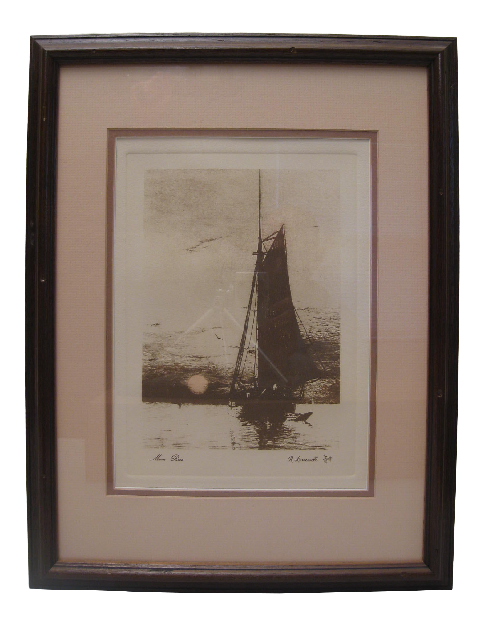 Rominer Lovewell Sailboat Etching Moon Rise Signed Mar 05 2012 Auctionbarn Estate Inc In Ca